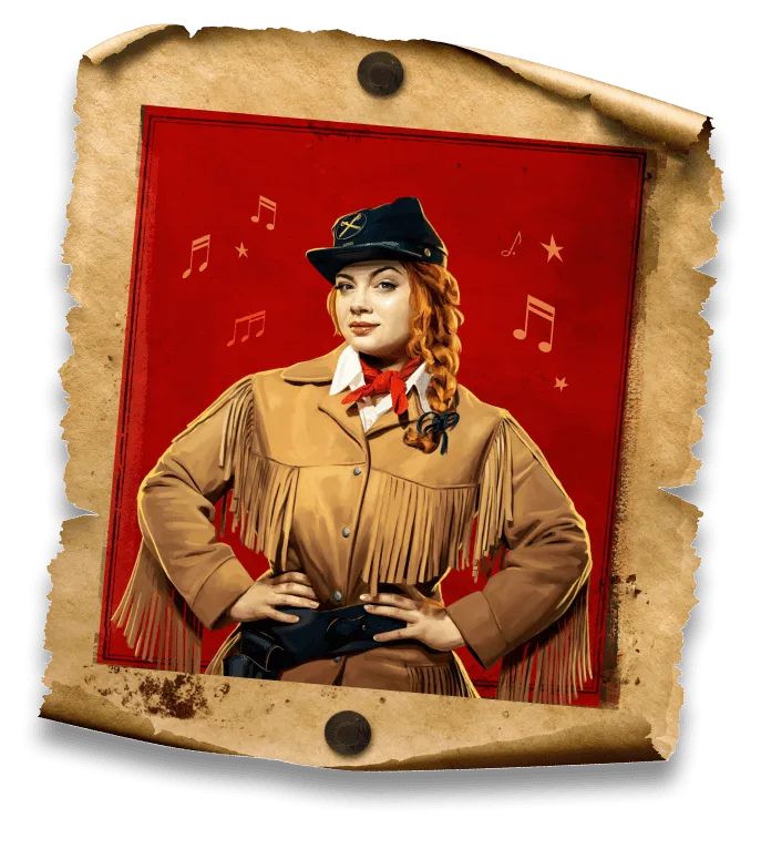 Meet the fearless, gun slingin' Calamity Jane – biggest mouth in Dakota territory and always up for a fight. She'll charm you hog-eyed though, especially when trying to win the heart of the dashing Lieutenant Gilmartin, or shooting insults at the notorious Wild Bill Hickok. But when the men of Deadwood fall hard for Chicago stage star Adelaid Adams, Calamity struggles to keep her jealousy holstered. Her heart's a thumpin'... but who for?